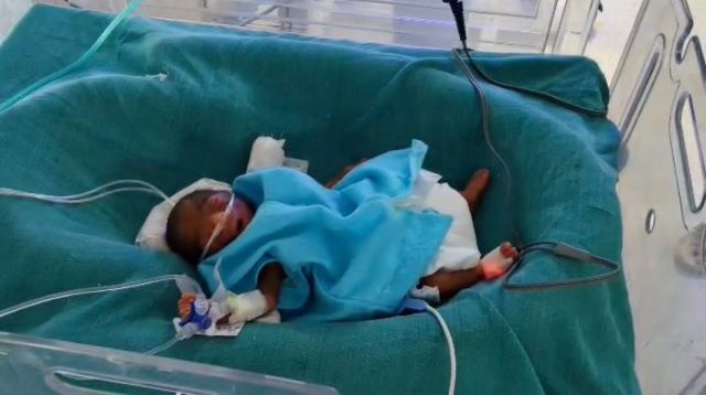 उसकी प्रीमेच्युर डिलेवरी से जन्म लिया है। बच्चे को फिलहाल आईसीयू में रखा गया है। उसे आॅक्सीजन सपोर्ट में रखा गया है। डाक्टरों की टीम उसे बचाने का प्रयास कर रही है। वही शिशु गृह से यशोदा कार्मिक को उसकी देखभाल के लिए लगाया गया है। बच्चे को अस्पताल लाते समय पूरा बॉडी का रंग नीला हो गया था। जन्म के बाद बच्चे को खुल्ले में रखने के कारण ऑक्सीजन नही ले पा रहा था। इसके कारण उसको ऑक्सीजन सपोर्ट में रखा गया है।