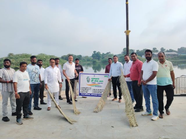 अधिकारियों और कर्मचारियों ने हाथों में झाड़ू और सफाई उपकरण लेकर तालाब की पाल की सफाई की। स्थानीय नागरिक और युवा भी इस अभियान में शामिल हुए।